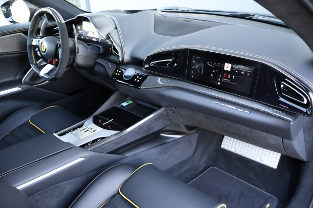 Brand new Ferrari Purosangue with € 135.000,- options In Canna di Fucile with Nero interior with beautiful yellow details. 10x carbon Blanco COC, world wide delivery possible.